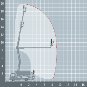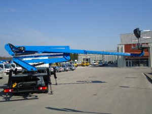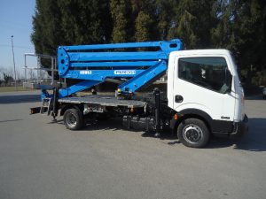 Platformy robocze na wysięgniku przegubowym mocowane na ciężarówce  ISOLI PNT 205  wysokość robocza 20,5m  , maksymalny zasięg 9,5 m  , wypożyczenie na godziny  z operatorem